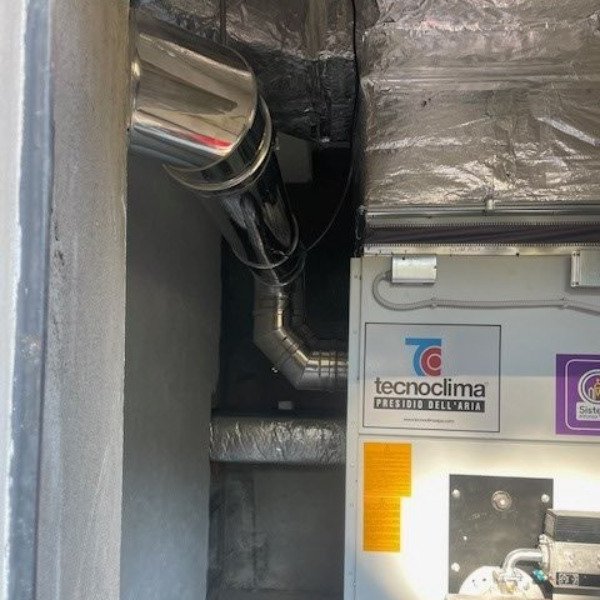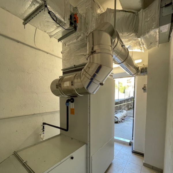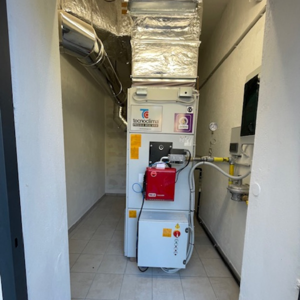 Impianto di riscladamento a condensazione, temperatura aria controllata, modulazione di potenza e portata d'aria variabile